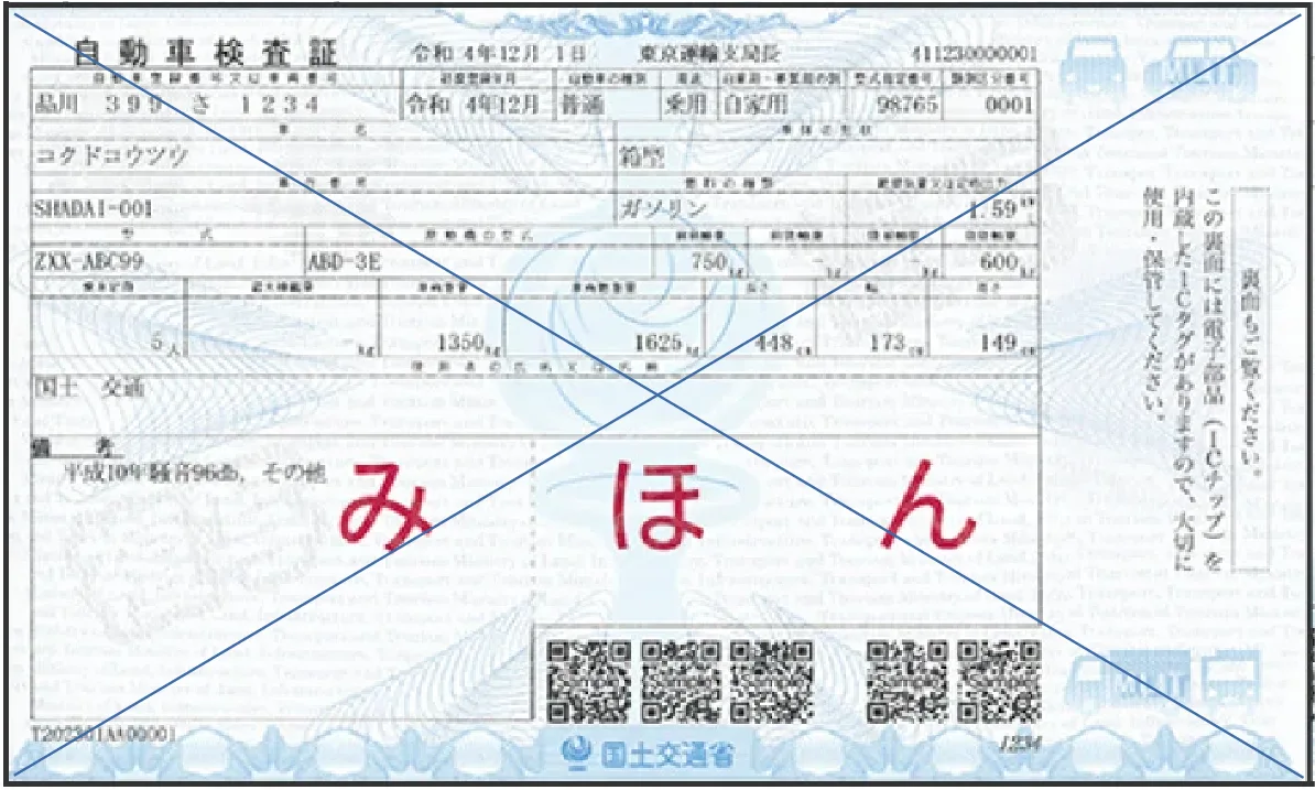 【電子車検証見本 A6サイズ相当】